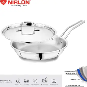 The Nirlon Triply FP22 Fry Pan (220 mm) — engineered for even heating, durability, and effortless cooking. Built with advanced triply technology, this pan combines three layers of metal for superior performance: a stainless steel top layer, an aluminum core for fast heating, and a magnetic stainless steel base for durability and induction compatibility.