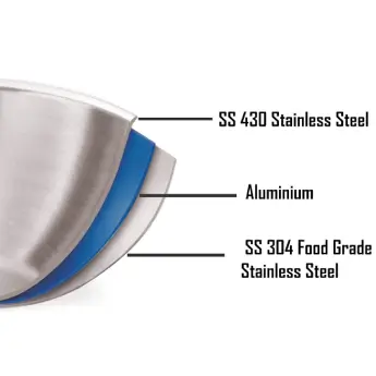 * Extra Deep Kadai assembled with Tri-ply stainless steel of the highest quality, The first layer provides a Food Grade 18/8 Stainless Steel used in the Inner surface for healthy cooking, the second layer encapsulates the layer of aluminum throughout the cookware for even heat distribution, less cooking, and minimum burning. And the Third Layer is made from SS 430 magnetic stainless steel making the NIRLON cookware induction friendly.