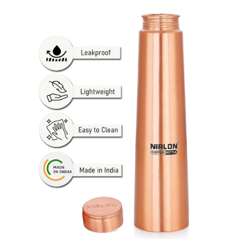 NIRLON bottles are made of BPA free and non-toxic copper materials, ensuring safe and hygienic drinking habits. Known for its anti-inflammatory and antioxidant properties, drinking water from a copper bottle offers several benefits such as aiding digestion and detoxing your body. Its ergonomic design, lightweight and leakproof features make this the perfect water bottle for kids. Highly durable and easy to clean, these bottles make an excellent addition to your kitchen. This tatva Copper water bottle is exquisitely designed with glossy finish that makes the surface smooth. Also, its ergonomic design makes it easy to carry. The copper water bottle from is specially designed with sealed cap to prevent the water leakage.