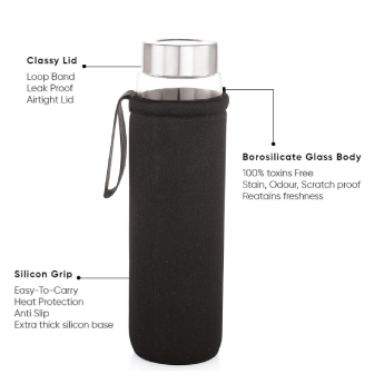 Food Grade Borosilicate Glass : Manufactured using food grade borosilicate toughened glass, the NIRLON Shudhh Borosilicate Glass Water Bottle with Sleeve is a 100% crystal clear, odour-resistant glass bottle that can be used for storing hot and cold water, or other liquids such as juices and more. Fabric Sleeve For Comfort and Convenience : The borosilicate glass bottle comes with a fabric sleeve to provide a comfortable grip and convenience in carrying the water bottle. Spill-proof and Scratch Resistant : The tight-fit screw-type lid prevents water from spilling, and the scratch-resistant property of the borosilicate glass keeps the bottle looking new as ever.
