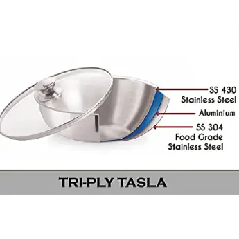 * Triply means 3 layers of metal bounded together, 1st-food grade 18/8 stainless steel used in the inner surface for healthy cooking, it is the most superior stainless steel with the longest life