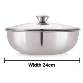 The NIRLON Tri-Ply TS24 Tasla is a 240 mm (24 cm) deep-bottomed cooking vessel designed for modern kitchens. Crafted with a tri-ply stainless steel construction, it ensures even heat distribution, durability, and compatibility with all cooktops, including induction. Ideal for preparing gravies, curries, sautéing vegetables, and more.