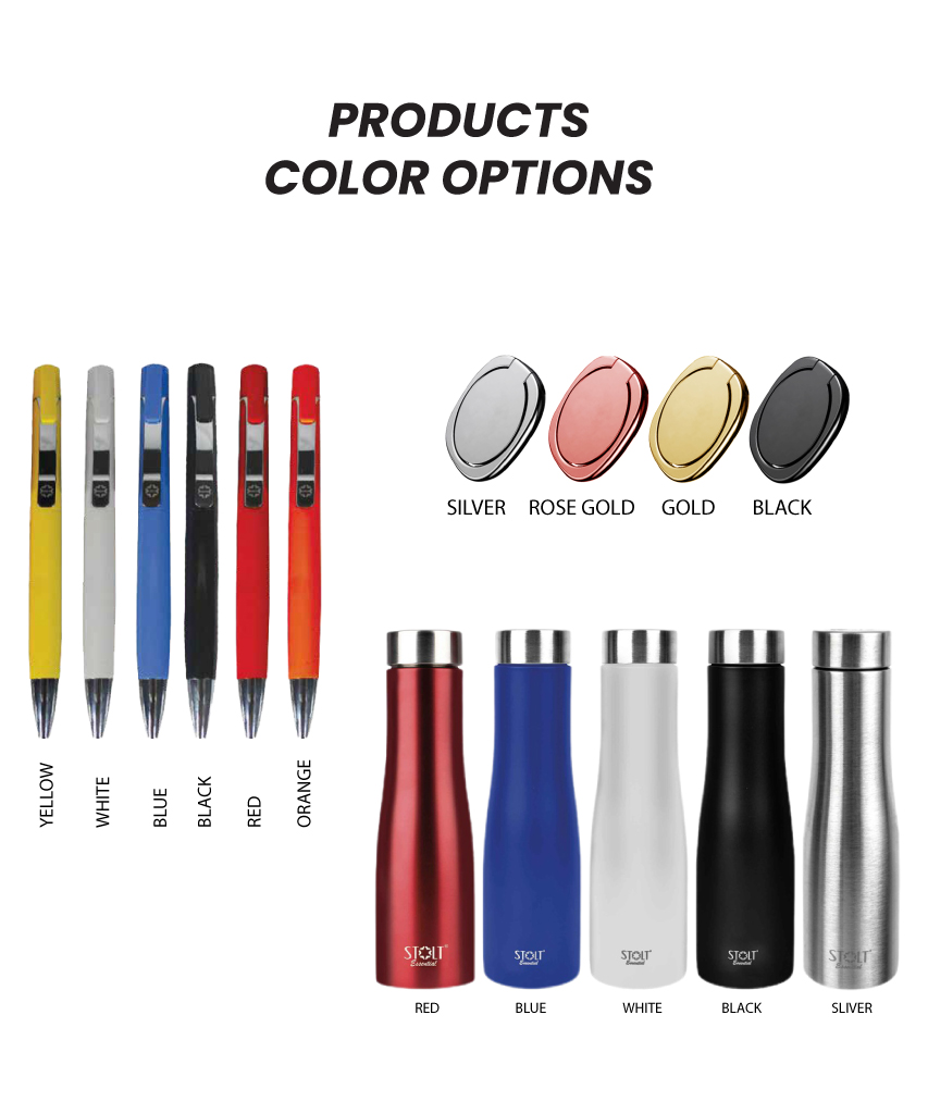 * Specialized products: Notebook, Pen, Bottle, Keychain, Mobile Holder.