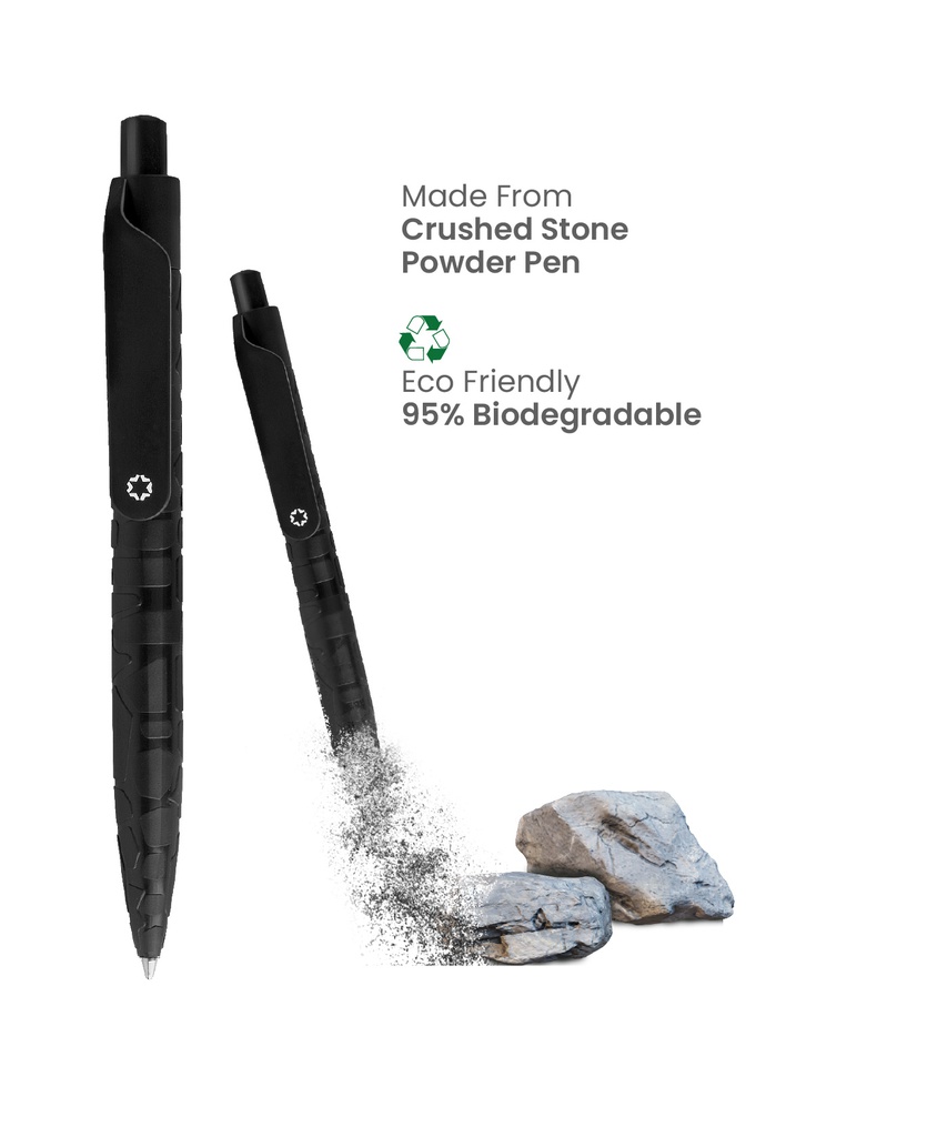 Additional Information Made from Crushed Stone Powder material, Eco Friendly - 95% Biodegradable, Free-flowing Ink, Unique Design Pattern on the Body, Solid Color Barrel, Rounded Push Button, Designer Clip.