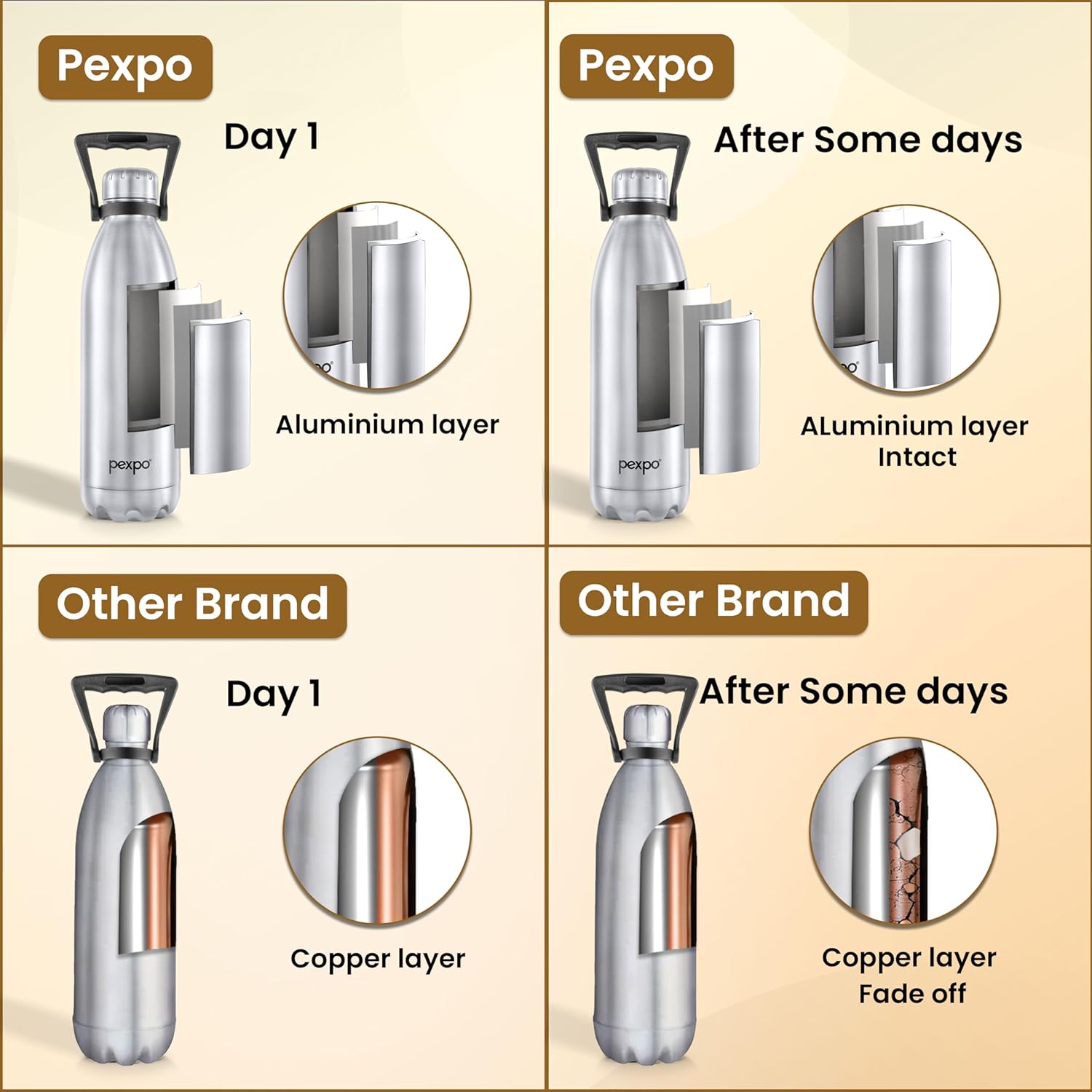 * Tri-Ply Vacuum Technology These flasks feature a thicker aluminum sheet between two steel layers, providing superior temperature control and durability, outperforming traditional thin copper coatings.