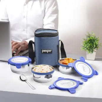 The PEXPO Click Meal Lunch Box Set is a thoughtfully designed tiffin set crafted for individuals seeking a reliable and portable solution for carrying meals. Ideal for office-goers, students, and travelers, this set ensures your food remains fresh and secure during transit.