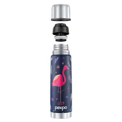​The Pexpo Flamingo is a 500 ml insulated water bottle designed to keep your beverages hot or cold for extended periods. Crafted from high-quality 304-grade stainless steel, it combines durability with a sleek design.​