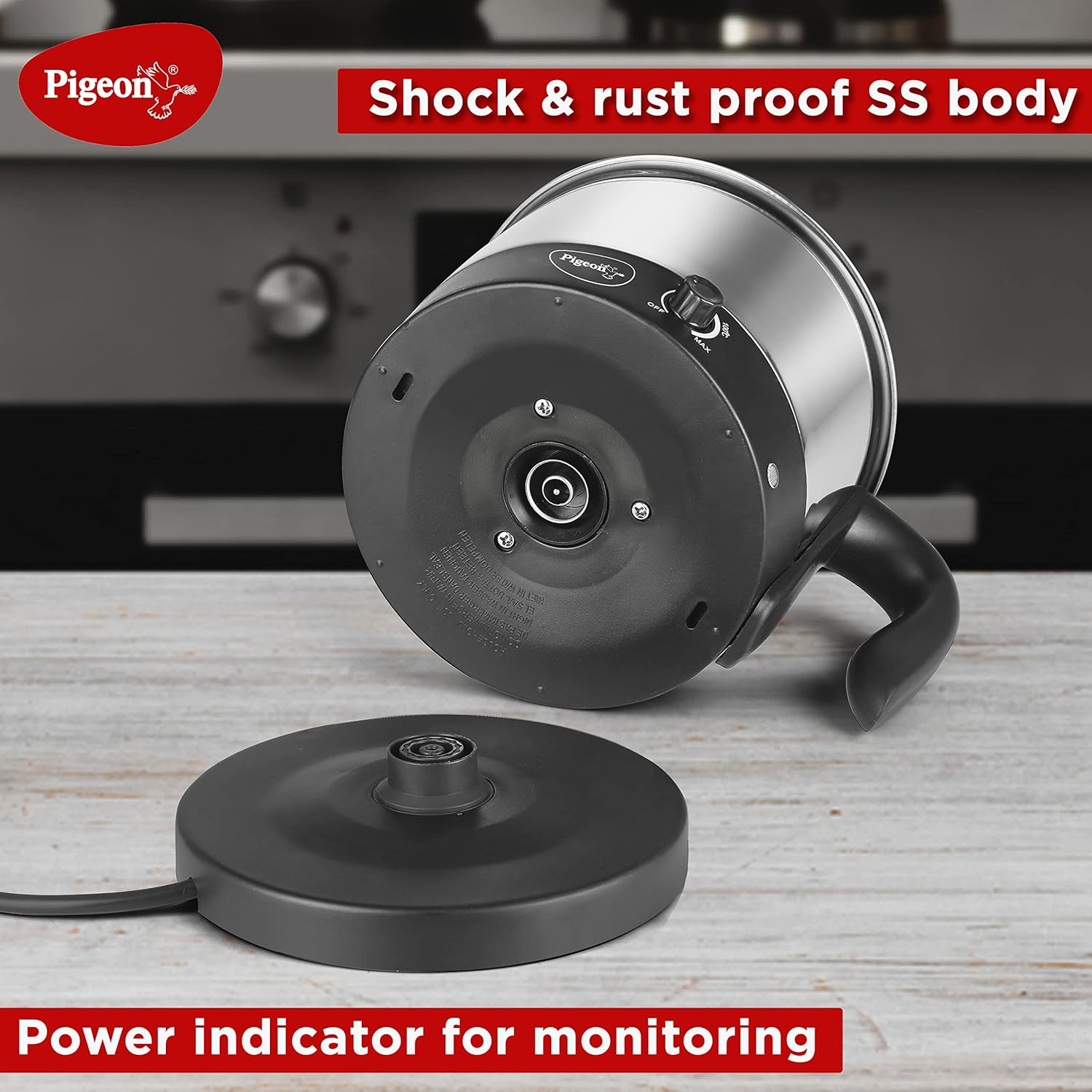 The Pigeon Kessel Multipurpose Kettle is a versatile kitchen essential designed to make your cooking and beverage preparation effortless. With a sleek stainless steel body and a 1.2-liter capacity, this kettle is perfect for boiling water, milk, preparing tea, coffee, oats, noodles, soup, and more.Equipped with a powerful 600-watt heating element, it ensures quick and efficient boiling, saving you time in the kitchen. The kettle's black and silver design adds a modern touch to any countertop.Whether you're brewing your morning tea, making a quick snack, or preparing a warm beverage, the Pigeon Kessel Multipurpose Kettle is your go-to solution for convenience and reliability.