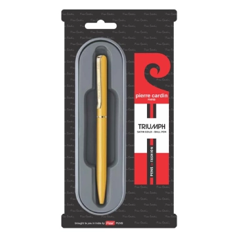 The PIERRE CARDIN Triumph - Gold Pen. Crafted to embody prestige and performance, this pen features a radiant gold finish and a sleek, streamlined silhouette that reflects Pierre Cardin’s signature sophistication.