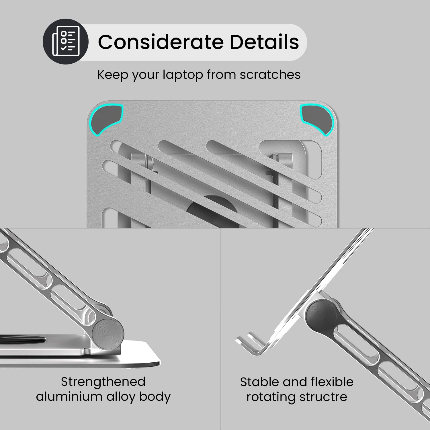 * With panels, grooves, and anti-slip silicone pads at the bottom, this laptop stand gives your device better support and prevents it from sliding.