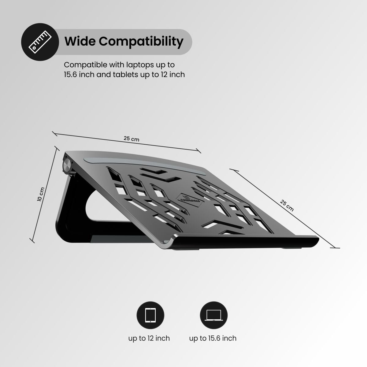 The PORTRONICS My Buddy Hexa 5 laptop stand is the perfect solution to elevate your laptop experience, offering comfort, convenience, and ergonomics for extended use. With a flexible design that fits laptops ranging from 5" to 17" in size, this stand ensures a stable and adjustable platform for your device, promoting better posture and reducing neck and back strain during long working or gaming sessions.
