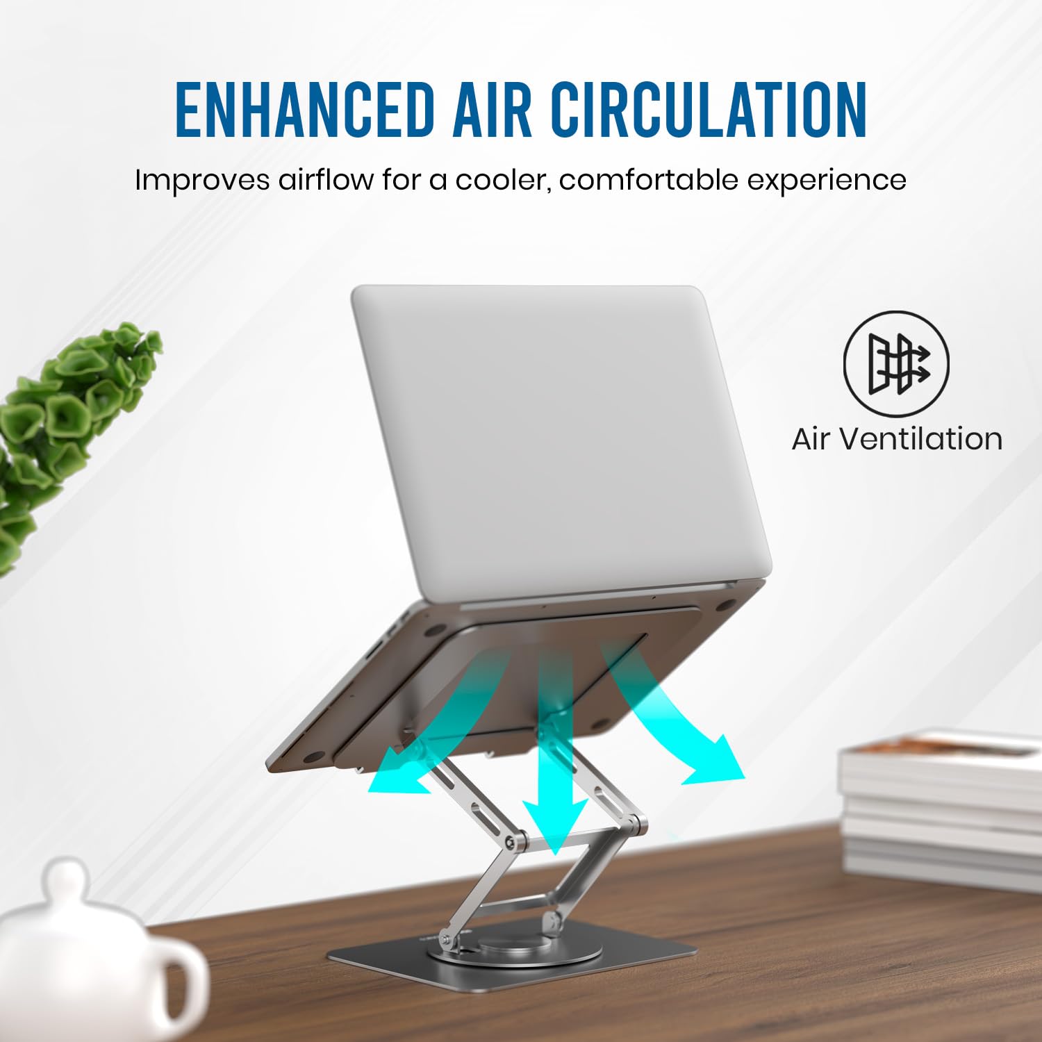 * 360° Rotating Base Swivel your laptop to any angle and share its display with others comfortably with the help of the flexible 360° rotatable base of this portable laptop stand.
