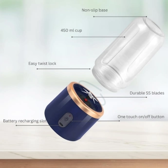 * Portable, Juicer Mixer Grinder & Smoothie Blender features a powerful motor base and the stainless steel cutting head is durable and has excellent mixing ability so you can break the pulp quickly without losing fibre