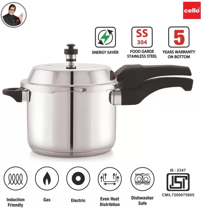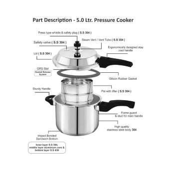 * ISI Certified Superior quality cooker with 5 year warranty on bottom