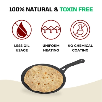 * Pre-Seasoned Surface & Healthier Cooking Naturally nonstick, requiring minimal oil for healthier meals without chemical coatings.