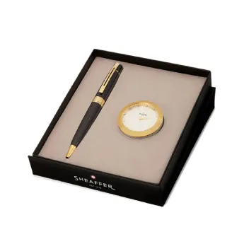 Sheaffer Ballpoint Pen & Table Clock Gift Set - Model 9325 BP A perfect blend of sophistication and functionality, the Sheaffer Ballpoint Pen & Table Clock Gift Set (Model 9325 BP) is designed to make a lasting impression. Ideal for corporate gifting, special occasions, or personal milestones, this luxurious set combines the smooth writing experience of a Sheaffer ballpoint pen with the timeless elegance of a stylish table clock.