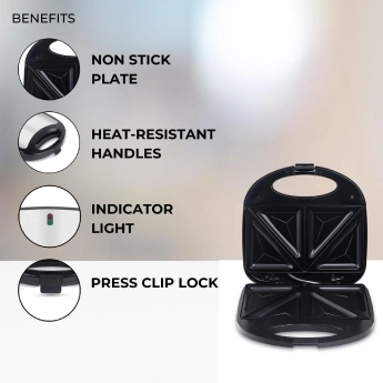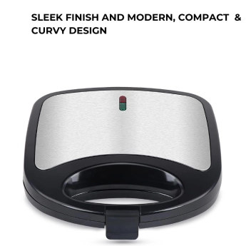 * Compact & Convenient Design Includes a handle locking, the sandwich maker has a silver-finish heat resistant top cover and an anti-skid rubber feet, ensuring it stays firmly in place during use.