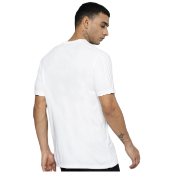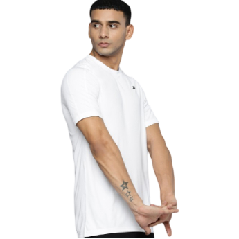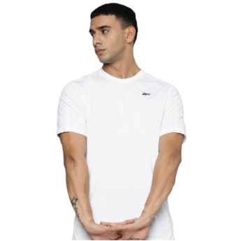 Experience effortless style with the Reebok white t-shirt, designed for the modern man. Crafted from lightweight polyester, this regular-fit t-shirt features a classic round neckline and half sleeves, perfect for warm days and casual outings. Its solid color ensures versatility across various occasions, making it a staple for your wardrobe. Elevate your everyday look with this blend of comfort and sleek design, ideal for any casual ensemble.