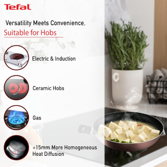Tefal, the World’s No.1 Cookware brand brings Day by Day Kadai which takes you to the future of healthy cooking. This titanium-coated Kadai is perfect for everyday cooking. As designed and manufactured in France it guarantees perfect cooking results every time day after day. Advanced technologies implemented in this Kadai ensure fast and tasty cooking with minimal use of oil promoting healthy eating. As the body of the kadai can be recycled The titanium coated cookware gives effortless cooking experience and saves your precious time .