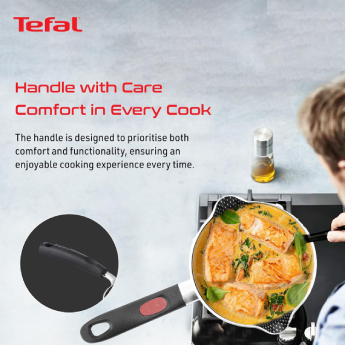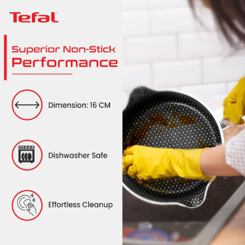 Coming from the house of Tefal, Simply Chef Saucepan adds convenience to your everyday cooking. Simply Chef Saucepan is available in size of 16cm which is designed and manufactured in France using best quality non-stick coatings that are free from all sorts of harmful elements and that makes it completely safe for daily cooking. The two-way titanium coating ensures the long-lasting glide of the Saucepan making it appropriate for daily cooking. Get the best healthy cookware set for your kitchen from tefal and enhance your cooking experience with us .
