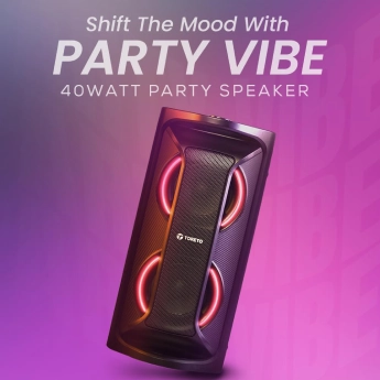 The TORETO Party Vibe, a powerhouse 40W Bluetooth speaker designed to fill any space with bold, immersive sound. Whether you’re hosting a house party, a backyard BBQ, or an outdoor event, this speaker brings the bass and clarity you need. With dynamic RGB LED lights, multiple playback options, and a robust battery, the Party Vibe turns any moment into a celebration.