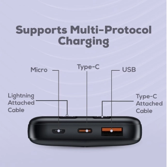 Power Delivery Output Micro USB, USB Type C , inbuilt Lightning cable