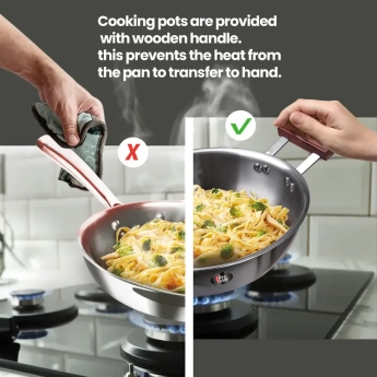 The Milton Hexa Tech 240cm Kadhai is a premium, high-performance cookware piece engineered to elevate your everyday cooking. Designed with advanced tri-ply construction, it features a core layer of aluminum sandwiched between two layers of stainless steel—ensuring uniform heat distribution, faster cooking, and energy efficiency.