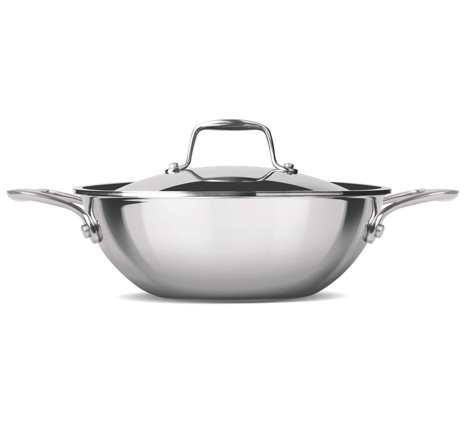* A food-grade 18/8 stainless steel interior for safe cooking, an encapsulated aluminium layer for even heat distribution and faster cooking, and a magnetic stainless steel exterior for induction compatibility.