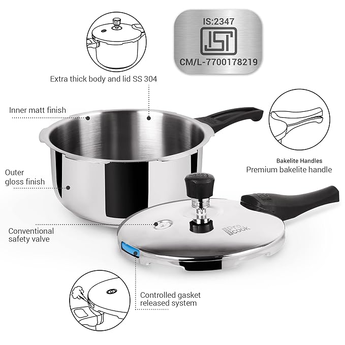 * It's special extra thick induction base makes it compatible with both gas stove and induction cooktops, adding to its versatility. Use this pressure cooker to cook lip-smacking sabzis, dal, rice, meat and much more.