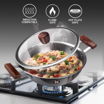 The Milton Hexa Tech 240cm Kadhai is a premium, high-performance cookware piece engineered to elevate your everyday cooking. Designed with advanced tri-ply construction, it features a core layer of aluminum sandwiched between two layers of stainless steel—ensuring uniform heat distribution, faster cooking, and energy efficiency.