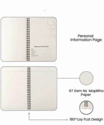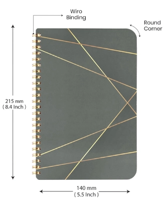 The elegant and stylish STOLT Trikon is designed for professionals to unleash their big ideas and great plans. This Gold Wiro notebook has a beautiful cover printed on 740 GSM Cyber XL Board, fused with GSM Board. It has high-quality NS Maplitho paper 129 pages for neat and clear writing along with 2 perforated sheets. It also has huge space for branding and three different options for logo printing that includes UV, Sticker, and Screen.