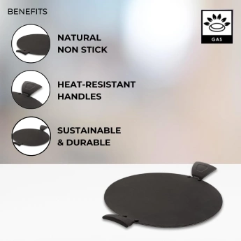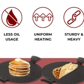 * Heat Efficiency Our Uttappam Tawa is engineered for superior heat efficiency. The even distribution of heat across the surface ensures that your Uttappam cook uniformly, achieving the perfect texture and flavor. Experience precision cooking with consistent heat.