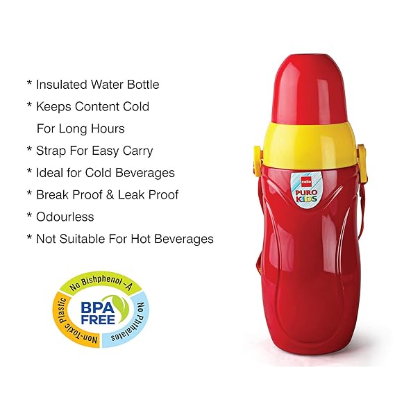 * Stay Cool: The Cello Kidzbee Puro Kids Insulated Kids Water Bottle made from BPA free Plastic, keeps beverages cold, making it perfect for school or picnics.