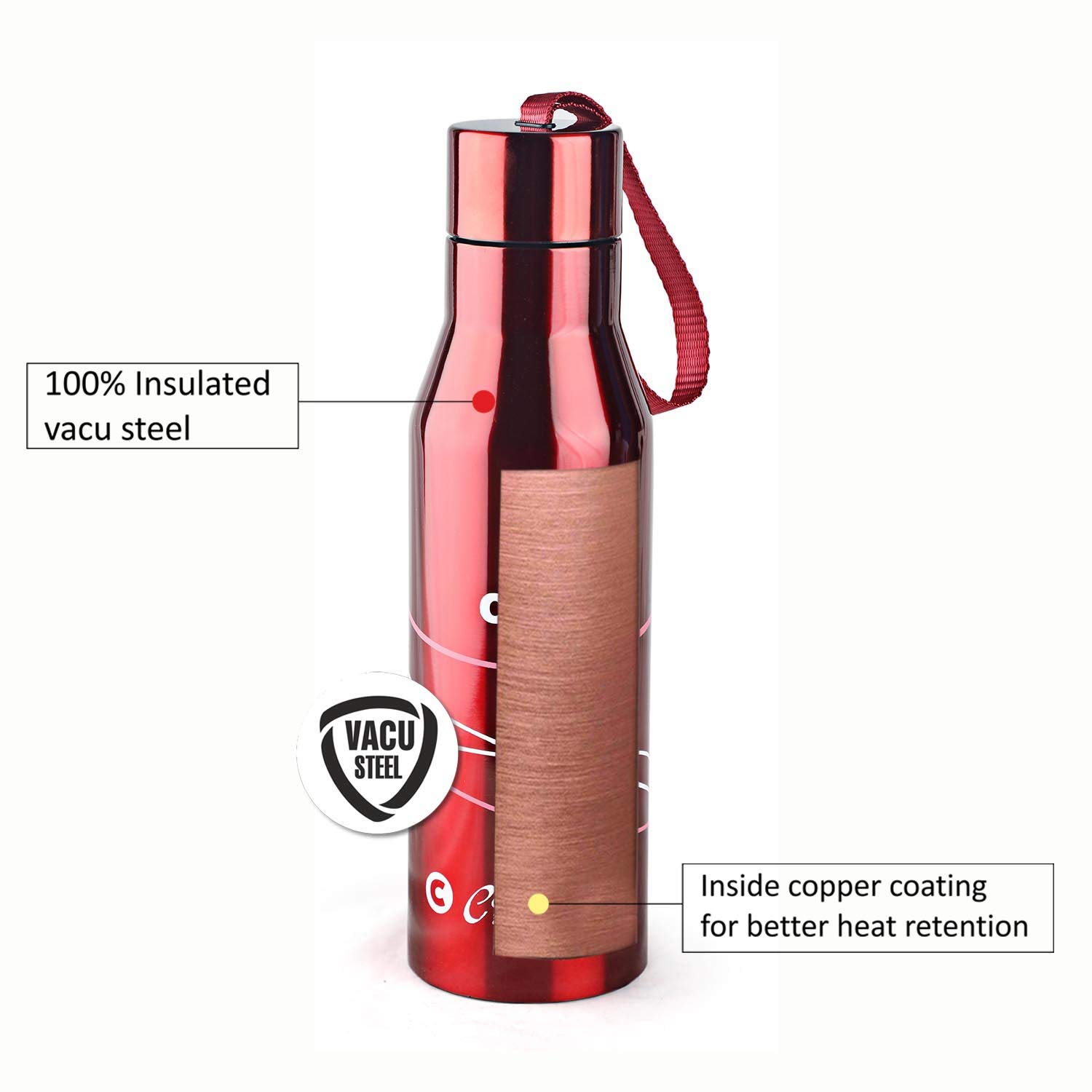 * Stainless Steel Double Walled Construction: The Cello Refresh Water Bottle is constructed with double-walled stainless steel, providing excellent insulation to maintain the temperature of your beverages. The double-walled design ensures that your drinks stay hot or cold for extended periods, making it suitable for both hot and cold beverages.