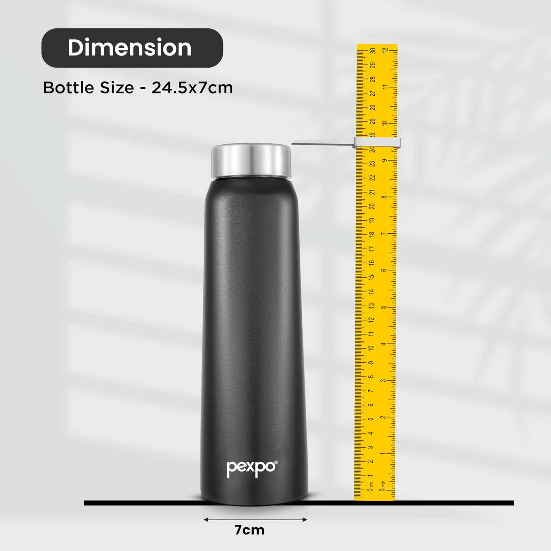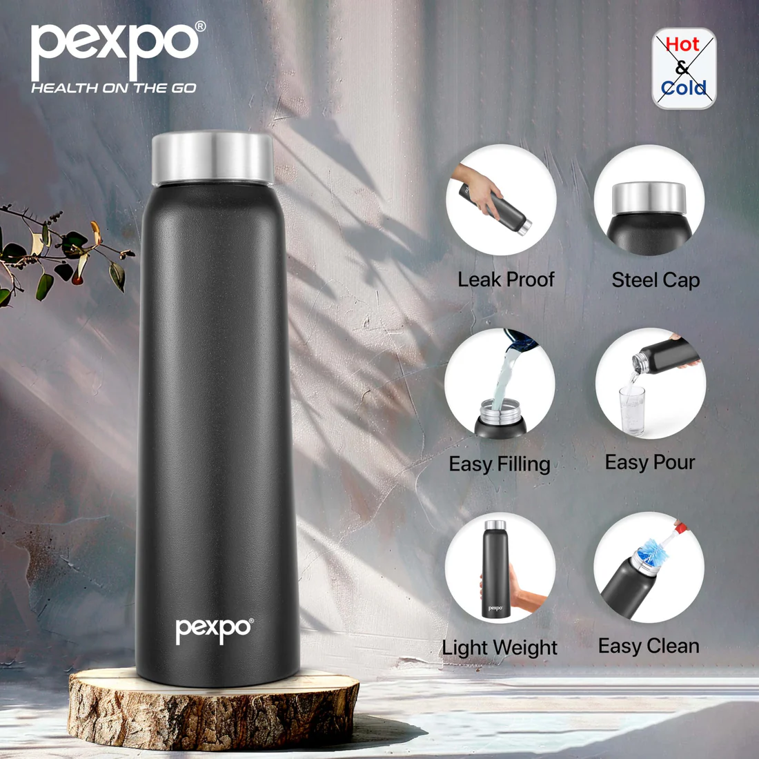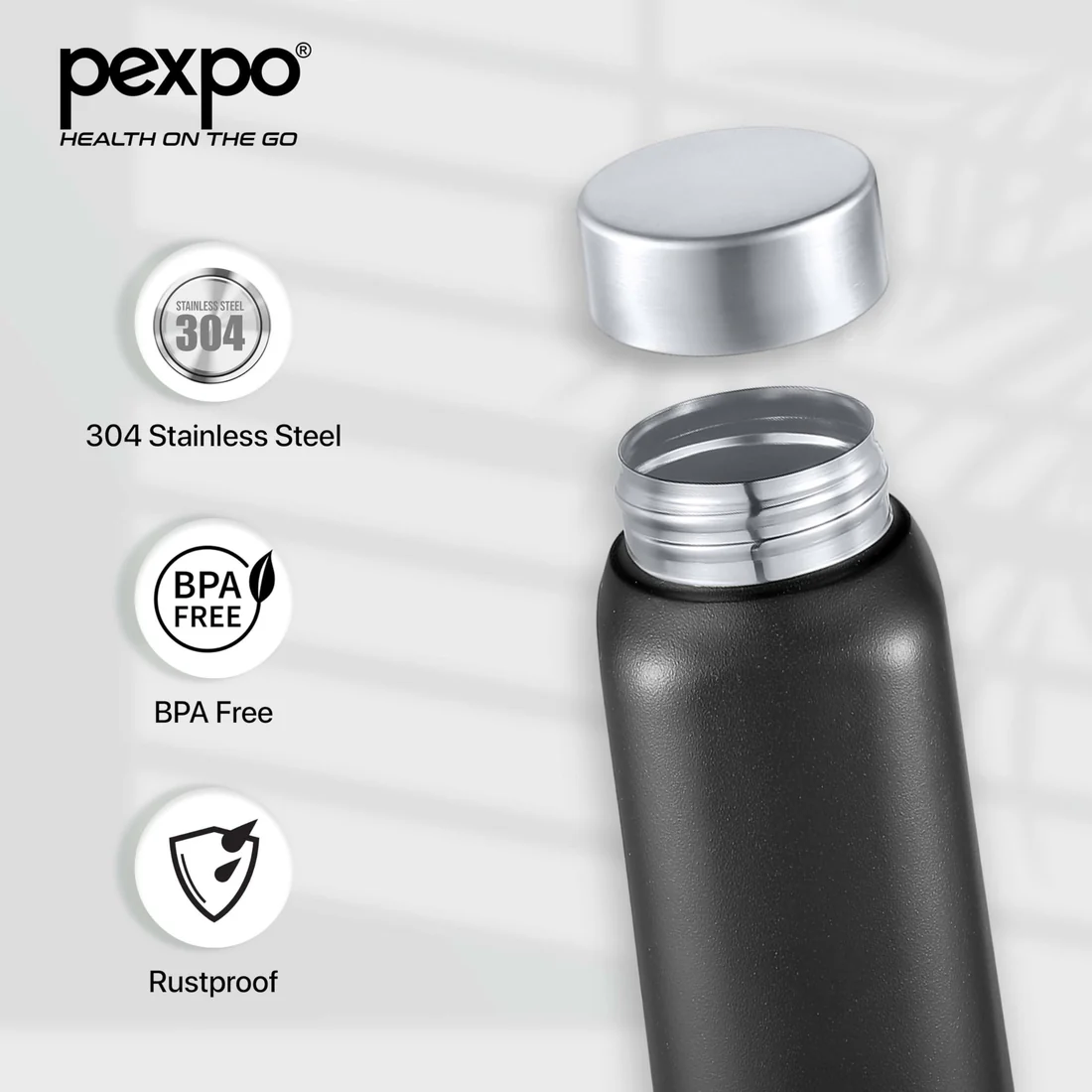 The PEXO Vertigo 750 ml Water Bottle combines sleek design with everyday practicality. Made from high-quality stainless steel, it features double-wall vacuum insulation to keep your drinks